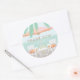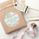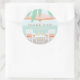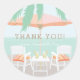 Este pegatina tropical de agradecimiento incluye un ilustracion de dos tumbonas blancas y vasos de limonada o cócteles en la mesa de playa bajo la sombrilla de bebé rosa con palmeras, cielo azul, océano turquesa y fondo de playa de arena blanca. Personalízalo para tus necesidades. Puedes encontrar productos coincidentes en mi tienda.