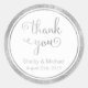 Purpurina plateado confetti & Relieve metalizado efecto gracias texto en una letra rápida con espacio para su texto personalizado en un pegatina redondo. Estos pegatinas sencillos y elegantes son perfectos para fiestas, favores matrimoniales, duchas de novias y sellos para sobres.