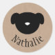 Nombre pegatina/ etiqueta, con un símbolo de perro negro en una imagen de fondo de papel marrón.