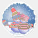 Pegatina lindo con pareja de hombres de nieve vestida para el invierno. Un sello para sobres agradable para tarjetas de vacaciones e invitaciones