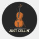Cuto diseño de cello que dice "Just Cellin". Pegatina personalizado para un violín