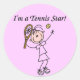 ¡Un jugador de tenis chica con una figura de palos en un fondo rosado con un texto que dice "¡Soy una estrella de tenis!" en una figura de palos pegatinas de tenis!