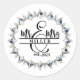 Este pegatina de forma redondeada se muestra con el nombre personalizado de Mr & Mrs imprimir, personalizar y cambiar el nombre y el año con esta plantilla.