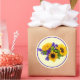 Pegatina redonda con una imagen de tres girasoles amarillo brillante y una estatua de mar azul sobre amarillo suave con un borde morado. Esta variedad de estadísticas produce grandes racimos de flores azules profundas durante una larga temporada, perfectas para usar en arreglos de flores tanto secas como frescas. El girasol (Helianthus annuus) es una planta anual nativa de las Américas. Posee una gran inflorescencia (cabeza florida) y su nombre deriva de la forma e imagen de la flor, que a menudo se utiliza para representar el sol. Vea confección y papel de envoltura. Vea toda la colección Pegatina Flores y Plantas en la sección CARDS, POSTCARDS & PEGATINAS.