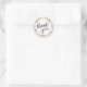 Una hermosa corona de flores delicadas y vegetación rodea la tipografía cursiva dulce de esta ducha femenina de novias o boda pegatina de favores florales. Se muestra con un fondo de color rosa pastel suave, pero se puede personalizar fácilmente para que coincida con el esquema de color.