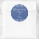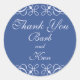 Esta es la coordinación Pegatina Gracias por la línea boda Blue Swirls. Es el tamaño perfecto para agradecerte los favores. Se puede hacer más pequeño fácilmente para sellos para sobres de tarjetas de agradecimiento. Avísame si puedo ayudar con eso.
