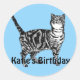 Redonda Tabby Cat Whimsical Blue Chicas Pegatina de cumple