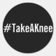 Redonda #TakeAKnee, texto blanco en negrita sobre pegatina