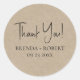 Moderno minimalista de moda, color marrón textura imagen personalizable escritura tipografía, regalo boda de bienvenida pegatina. El fondo de textura con estampado de lino de color marrón le da un toque de elegancia orgánica. Hay otros colores disponibles.
