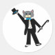Un lindo gato gris disfruta bailando grifo en su esmoquin, sombrero de punta y bastón en este adorable pegatina. ¡Vamos Kitty, Vamos!