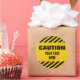 Las tiras de precaución son negras sobre amarillo con cualquier texto, personalizar todas las líneas de texto según sea necesario para un pegatina de advertencia o un dicho gracioso.