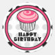 Un pegatina con un ilustracion de un quequito rosado caliente rodeado de un marco a juego. El texto del personalizable dice "Feliz cumpleaños". El fondo es el punto negro de la polka. Busque artículos que coincidan, como invitaciones en la categoría "Tienda de Cumpleaños" de la tienda de Pink Schoolhouse.