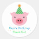 Este lindo y colorido pegatina de favores es ideal para celebrar una fiesta de cumpleaños con un tema de cuento de hadas. Presenta un ilustracion de personajes de los Tres Cerditos usando un gorra fiesta. Pegatina Unisex ideal para un niño pequeño y un evento animado.