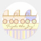 Anunciar la gran noticia con este divertido diseño pegatina. Dos carros para los chicas uno para el niño con rayas azules, rosas y amarillas hacen la invitación divertida en su ducha de bebé o sobres de invitación.