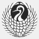 Una grúa blanca estilizada sobre un fondo negro. La palabra japonesa para grúa es tsuru, que es un símbolo de longevidad y buena suerte para los japoneses