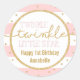 Redonda Twinkle Twinkle Pegatina de cumpleaños rosa y oro