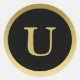 Redonda U :: Monograma U Elegante Pegatina Dorada y Negra