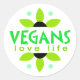 Atractivo diseño floral verde en este pegatina vegano con las palabras Vegans Love Life.