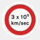 Este pegatina tiene una imagen humorística de una señal de límite de velocidad al estilo europeo, ¡de la velocidad de la luz!
