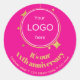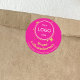 Un pegatina de aniversario rosa adornado con el logo de la empresa / negocios / tienda sobre fondo negro, creando un elemento de decoración festiva para posts o regalos. Para cualquier jubileo/aniversario de tiendas, empresas o pequeños negocios. Se puede añadir dirección de personalizable o saludo personal.