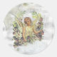 tiene un ángel vintage como figura central. El ángel, de estilo clásico, se asienta cómodamente entre una cama de flores. Las flores, con sus colores vibrantes y detalles intrincados, le dan un toque de belleza terrenal a la escena celeste. El ángel no solo está entre las flores sino también sobre una nube, creando una sensación de belleza etérea y tranquilidad. La nube sirve como un asiento suave y esponjoso para el ángel, mejorando aún más el tema celestial de la obra de arte. En el fondo, se puede ver un desplazamiento de la música de las hojas, parcialmente oculto detrás de la niebla de las nubes. La partitura aporta un elemento armonioso a la escena, sugiriendo la presencia de música celeste. Es como si el ángel estuviera sentado en las nubes, rodeado de flores, mientras que una divina melodía toca al fondo. La combinación de estos elementos -el ángel vintage, las flores, la nube y la partitura- crea una escena visualmente serena y pacífica, llena de simbolismo y belleza.