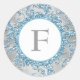 Este elegante pegatina o sello para sobres de patrón de damasco purpurina de 1.5" monogramado azul hielo, color gris plateado y floral FAUX, tiene un fondo de variados copos de nieve blancos que coinciden con la invitación de boda de invierno que se muestra a continuación. Puedes cambiar el monograma a lo que quieras, y también puedes cambiar el tamaño y/o forma del pegatina, aunque para obtener los mejores resultados, por favor envíame un correo electrónico para cambiar la forma. Si necesita cualquier otro elemento coincidente en este diseño, envíe su solicitud a niteowlstudio@gmail.com.