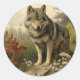 En este pegatina redondo aparece una impresionante imagen vintage de un lobo parado en un prado. Utilice este pegatina para envíos especiales, decoración, scrapbookeo y más! Gran pegatina para la naturaleza y los fanáticos del lobo también.