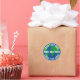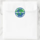 Pegatinas de la Tierra redonda con texto personalizado. Logo del mapa del mundo azul y verde con plantilla de texto en blanco. Crear pegatinas y sellos para sobres para el calentamiento global, problemas ambientales del cambio climático, preservación de la naturaleza, energía verde, protección de los bosques, protestas, sopa de plástico, reciclaje, reciclaje, etc. Dibujo del mar terrestre. ¡Salven el planeta, salven la tierra!