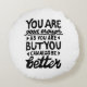 Impresión en lino blanco y negro de una cita motivacional que dice "Eres suficientemente bueno, pero siempre puedes ser mejor". Brinda un estímulo para que la gente sepa que la autoaceptación y el crecimiento van de la mano.