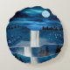 Escena paisajística abstracta de una cascada de agua con luna, pájaros, cielo nocturno y estrellas.
