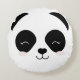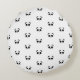 Cojín con cara de oso panda por un lado. Por el otro lado tiene un mosaico de caritas de oso panda.