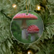 Hongos mágicos de cuento de hadas con gorras rojas y hierba verde.
