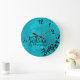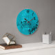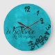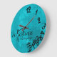 La aguamarina azul y se ennegrece lo que, yo son último de todos modos reloj de pared. Divertido cualquier reloj con las letras de lujo y el fondo hermoso.