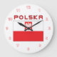 Bandera De Halcón Polaco Con Reloj De Muro Polska. Muestra tu orgullo polaco con esta hermosa imagen de la bandera roja y blanca de Polski con la palabra Polska encima de la bandera.