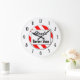 Redondo Grande Barber Shop Red Black Personalizado retro reloj