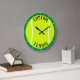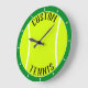 El reloj de la pared de colores y el texto personalizado de la bola de tenis: Un hermoso y totalmente personalizable reloj de pared de pelotas de tenis para jugadores o entrenadores. Haga clic en "Personalizar esta plantilla" y escriba su propio nombre de equipo de tenis u otro texto, o podría borrar el texto del marcador de posición para un simple reloj de pelota de tenis. También puede hacer clic en [Personalizar] y utilizar la herramienta de selección de colores para cambiar el color del borde (actualmente establecido en verde oscuro) a cualquier color que desee. ¡Hace de la casa o de la oficina una decoración increíble para los amantes del tenis!