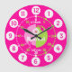 Coloridos chicas de color de la pared gráfica codificado para ayudar a su hijo a leer un reloj. Esta colorida ayuda didáctica incluye minutos y horas y pasadas y hacer el juego infantil de contar la hora. Color del reloj codificado en rosa, verde claro y blanco con una pequeña flor de margarita. El reloj se puede personalizar con tu propio nombre. Actualmente se lee Rachel. Diseñado exclusivamente por Sarah Trett. Una gran adición al dormitorio de una niña que está aprendiendo a leer la cara de un reloj.