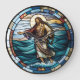 Redondo Grande Cristal manchado Jesús caminando sobre el reloj de