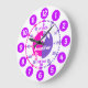 Coloridos chicas reloj de pared gráfico educativo, con código de color para ayudar a su hijo a leer la cara del reloj. Este reloj tradicional, funciona como una ayuda para la enseñanza e incluye minutos y horas pasadas para ayudar a su hijo a aprender a contar la hora. El reloj está codificado en color rosa, púrpura y blanco y cuenta con una pequeña mariposa blanca y se puede personalizar con tu propio nombre. Actualmente se lee Jennifer. Diseñado exclusivamente por Sarah Trett.