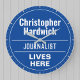 Un regalo divertido de estilo conmemorativo de la plancha de la pared en forma de reloj de pared para un periodista. Placa azul y blanca. Edite el diseño para cambiar la redacción de manera que se ajuste al destinatario del regalo.