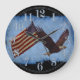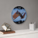 Un poderoso símbolo de la libertad americana, el gran águila calva, se alza con la bandera de los Estados Unidos "Gloria vieja" firmemente atrapada en sus garras. Un excelente diseño artístico para los patriotas de la nación estadounidense. NB: Este diseño de reloj está disponible con o sin los números de hora.