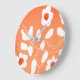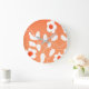 Un reloj de diseño con melocotón y acentuado en rojo y blanco. Las flores blancas se pueden personalizar a cualquier color junto con el mensaje inspirador de apreciar el texto de las cosas pequeñas, o el texto es extraíble.