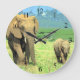Redondo Grande Elefantes Safari Africanos Gran Reloj
