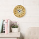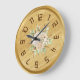 Redondo Grande Elegante Reloj Golden Wall con flores
