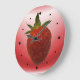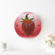 Para la cocina. Una grandiosa y despiadada fresa roja dulce. Presentado sobre un fondo de diseño de suaves colores de tarta de fresa. TShirtStrawberry, BGWarpRed, Clock7a