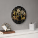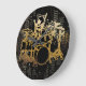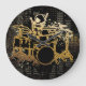 Jugando el reloj de pared de tambores reloj de pared contemporáneo con un tambor en acción. Los colores son negro y dorado.