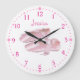 Este reloj de pared adaptable tiene una imagen de los zapatos de ballet rosados. Este diseño es dos zapatos o deslizadores rosados de ballet, con las cintas conectando en cascada alrededor de ellas.