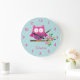 Redondo Grande Lechuza rosa en una rama personalizada reloj de pa
