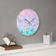 La Sirena Pastel Chicas Dormitorio Clock. Diseño de escalas de sirenas rosadas, púrpura, Verde azuladas.