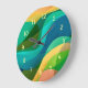 Redondo Grande Moderno Green Blue Yellow Abstract Art Gran Reloj